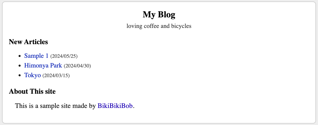 The new article is rendered like below. In the same way, you add new articles and edit existing articles.