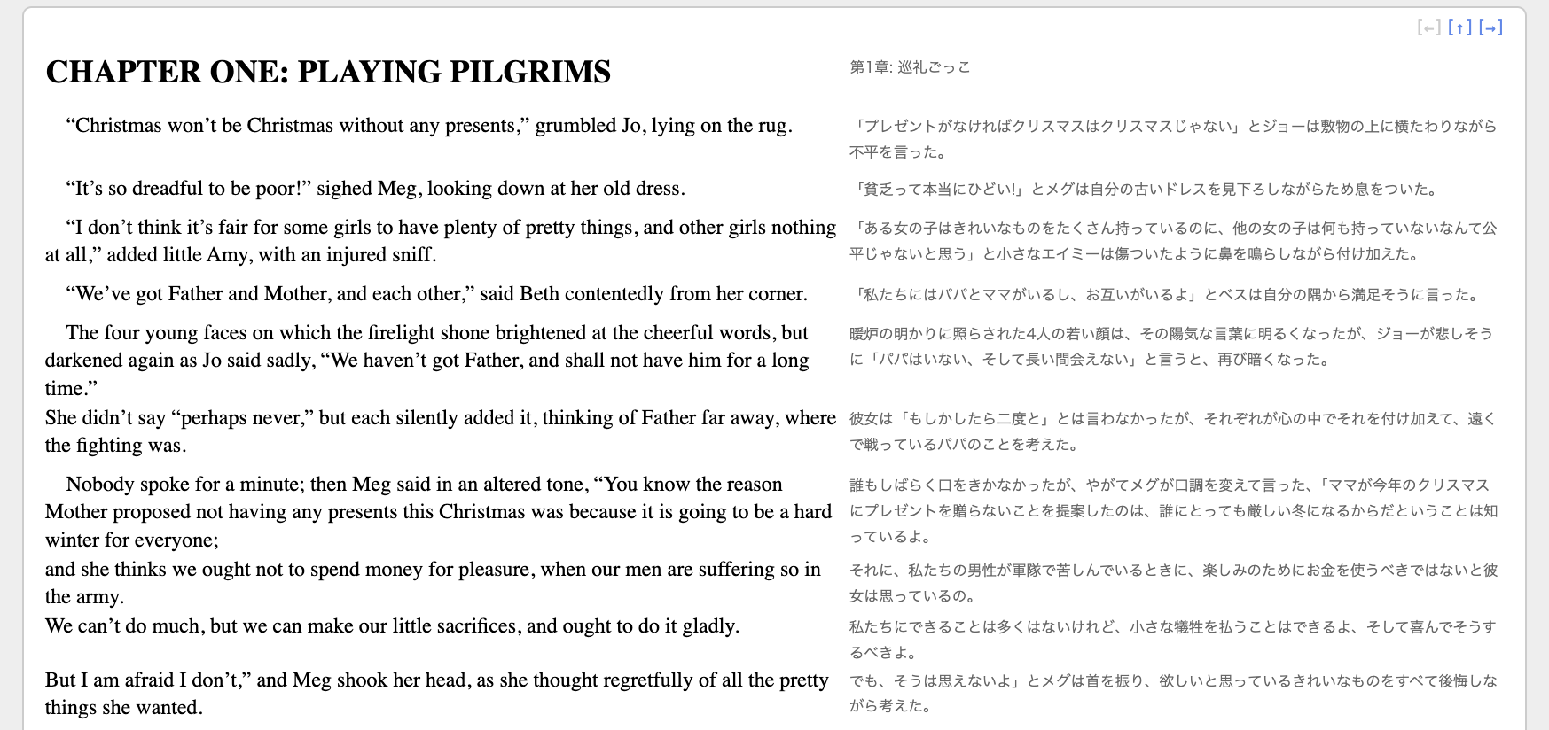 任意のWebブラウザで以下のリンクをクリックすると、その作品を読むことができます。原著の各文の直後にその対訳文が置かれます。
