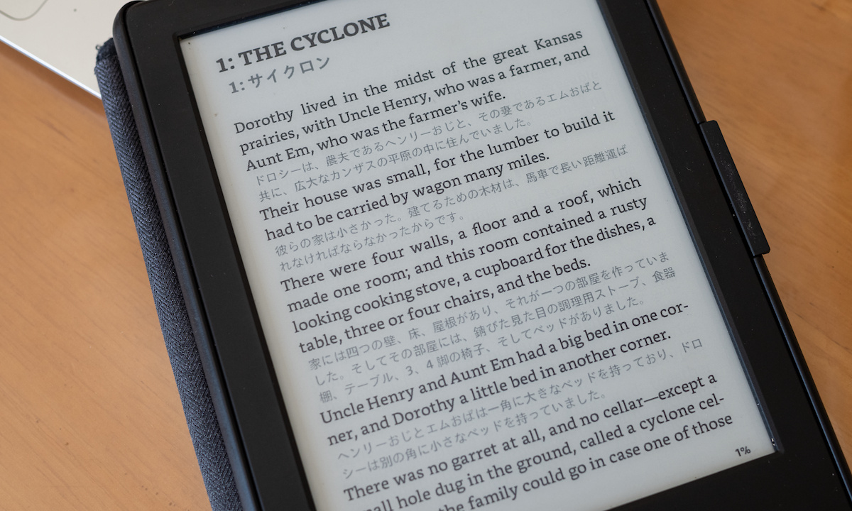 原著の英文の各文のすぐ下に訳文が表示されるので、解釈に困った時にも訳文を参照して、意味を把握することができます。それでいて、訳文は目立たない色になっているので、英文だけを注視して読み進めていくことができます。